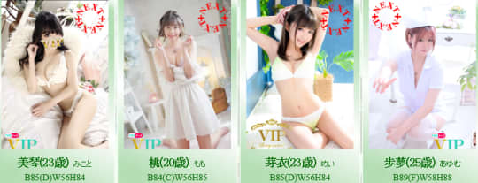 タイプ | エロかわ系 | エロかわ系 | かわいい系 | ナースコスプレ系 | OL系 | エロかわ系 | モデル系 |