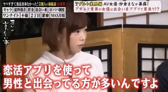 昔、AV女優の紗倉まなさんがテレビで、AV女優もマッチングアプリを使っていると暴露し話題になったこと、覚えていますか?
