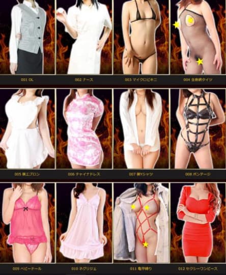 コスプレ各種・2,000円 バイブ・3,000円 オナニー鑑賞・4,000円 放尿鑑賞4,000円
