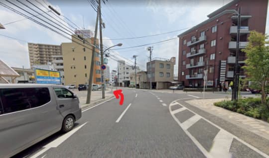 駅を右に出て居酒屋「笑笑」から右へ曲がります。