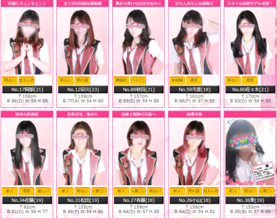 アイドル系なので、ルックス・スタイルはもちろん、若い子しか在籍していません!