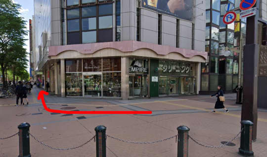 札幌駅前通りを目指して直進です(赤い矢印通り)