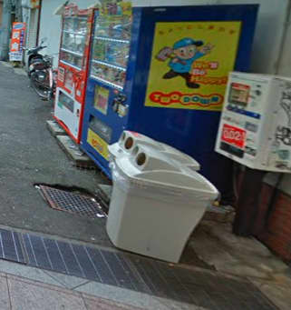 しばらく進むと自動販売機が並ぶ路地があるのでそこを右に曲がり進む