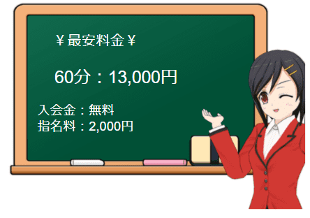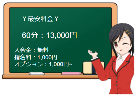 最安料金は60分13,000円で、入会金は無料、指名料は2,000円です。