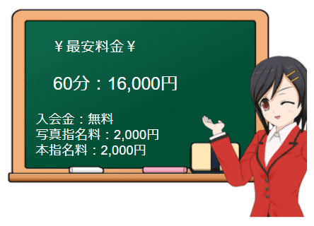 最安料金は60分16,000円~、入会金は無料、指名料は2,000円となります。