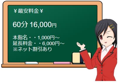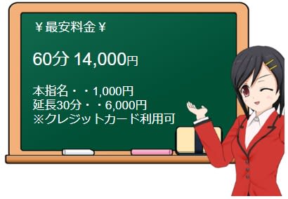 最安料金は新人と遊ぶ場合の料金です。基本料金は60分:14,000円から用意されています。