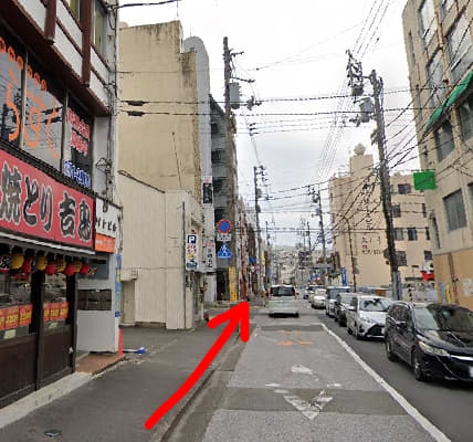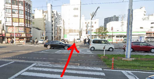 向かって右側に「ファミリーマート」があるので、ここの横断歩道を渡ります!