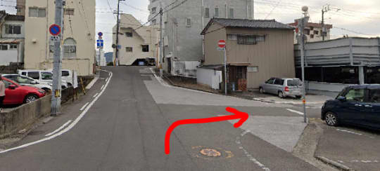 次は、左側に月極駐車場があるので、それを目印に右へ曲がります。