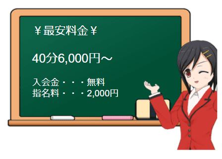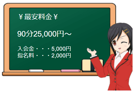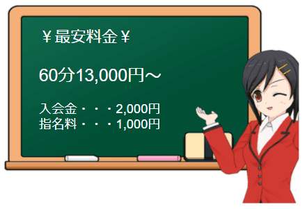 最安料金はスタンダードコースの60分13,000円~、入会金は2,000円、指名料も2,000円となります。