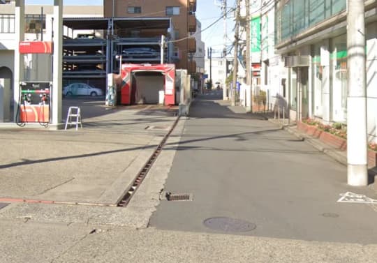 駅を出て都道299号へ出ます。ガソリンスタンドから右へ曲がります!