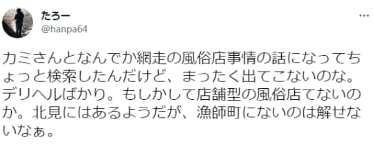 網走はここ近年、全ての店舗型風俗店はありませんでした。