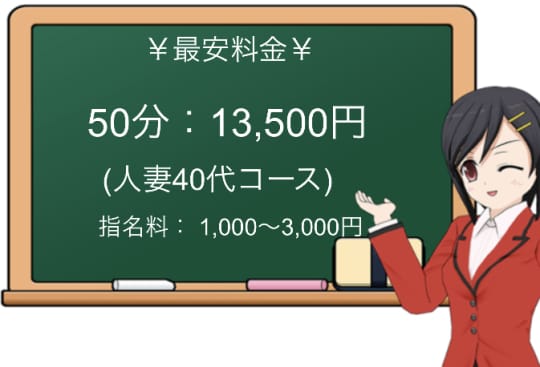 40代の人妻コースは50分間ですが、13,500円で遊ぶことができます。