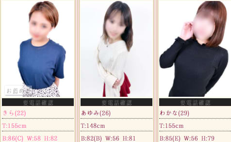 可愛い系から清楚系、ロリ系、巨乳など色々な女性が在籍しているので、楽しめますよ。