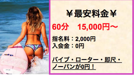 料金は60分15,000円から。女の子を指名する時は指名料2,000円がかかる。入会金は0円なので初めて遊ぶ人にもオススメだね。自宅やラブホテルへ派遣してもらう時の交通費は電話で確認しよう。