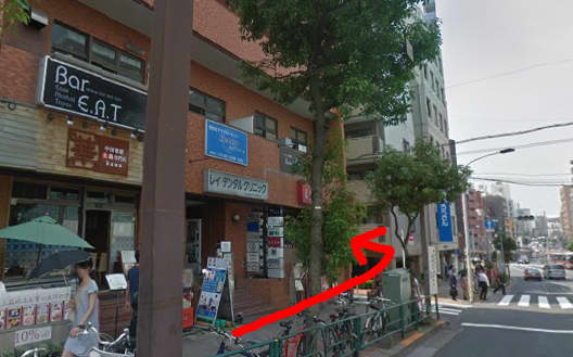 そして、お店は向かって左側、ちょうど信号のあるところの茶色いビルですね。