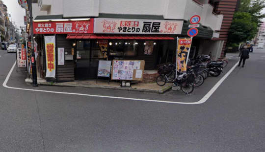そうしていると、前方に「扇屋」という焼き鳥屋が見えてくるはず。
