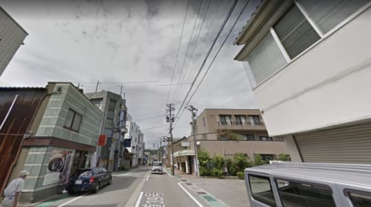 クリスタルマジック側から見ると上記のイメージ。路地を挟んだ場所に「ソープランド・バースデー」があるのと、他は住宅や「北國新聞社・中支局」があるよ。