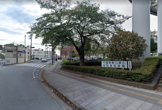 右側側に千葉駅東口第5自転車駐車場の看板が見えます。