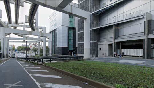 上にはモノレールの線路が見えます。