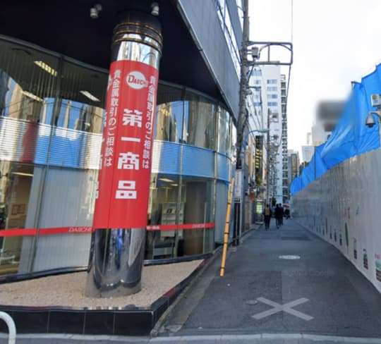 第一商品のビルが見えたら路地に入る。