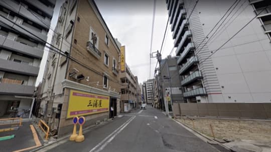 お店から少し離れた場所に風俗店の「角海老・三浦屋」があって、三浦屋の角を左に曲がって進むと、左手にナチュラルプリンセスが見えてくる。