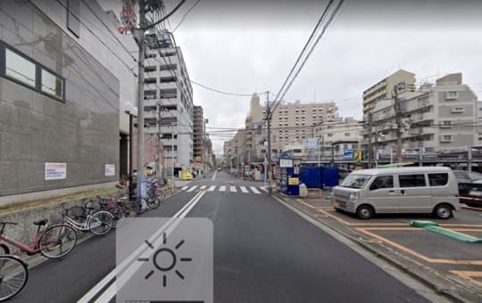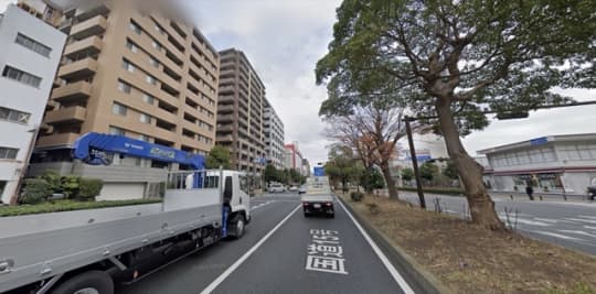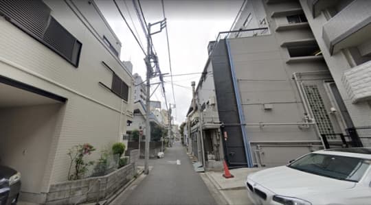 車道から説明すると、歯科医院の「ひるまデンタルクリニック」や、青色の案内標識(品川や川崎駅、蒲田方面のもの)を覚えておくといいかと。