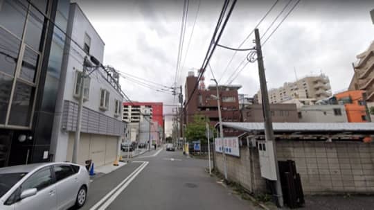 写真で言うなら、この道を左に曲がって進むと右手にソープが見えてくる。