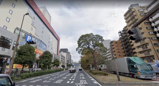 素敵な奥様は交差点にあって、斜め向かいに「スカイハートホテル川崎」があるから目印にするといいよ。