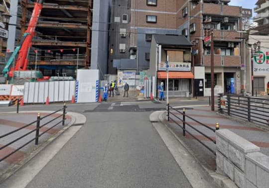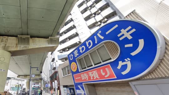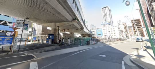 出入り口を出ると、目の前に見えるパーキングの看板を右手に高架下をずっと歩きます。