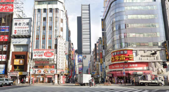 商店街を抜けると靖国通りにぶつかるので、正面のゴジラ、ドンキホーテに向かって横断。