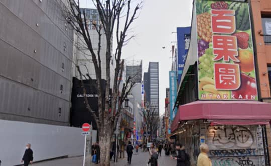 スタジオアルタ前、百果園を右手に見ながら直進。