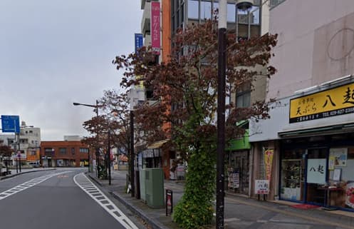 途中で天ぷら屋さんの八起というお店の前を通るよ。