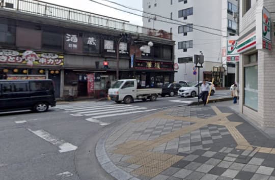 九州横丁の九太郎というお店が左側に見えるから、そこを左に曲がるよ。