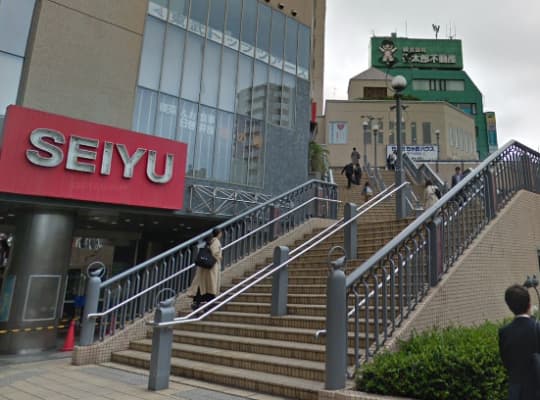 成増駅北口の階段を降りると西友が見える。
