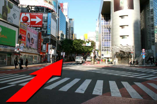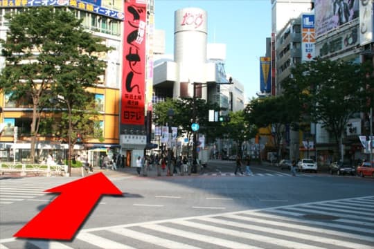 スクランブル交差点を渡りますと、正面に109が見えてきますので、そちらを目印にお進み下さい。