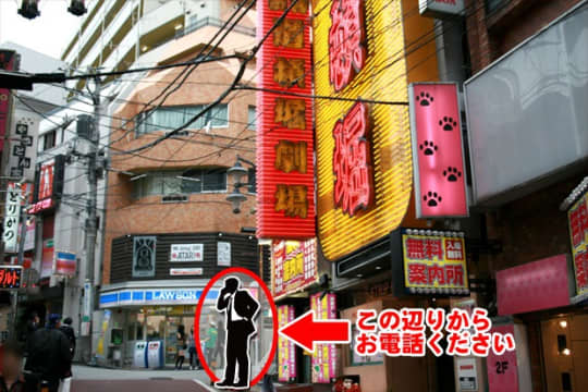 お店がそちらから徒歩10秒の距離にあるますので、ローソン付近から電話して下さい。