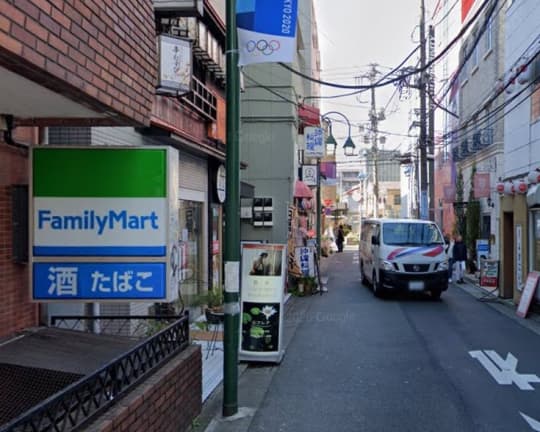 「中目黒駅西口」を出たら「ファミリーマート中目黒西口店」を左手にして直進する。