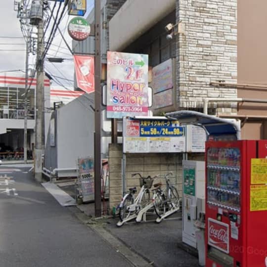 駐輪場の横にハイパーサロンの看板が見えてくる。