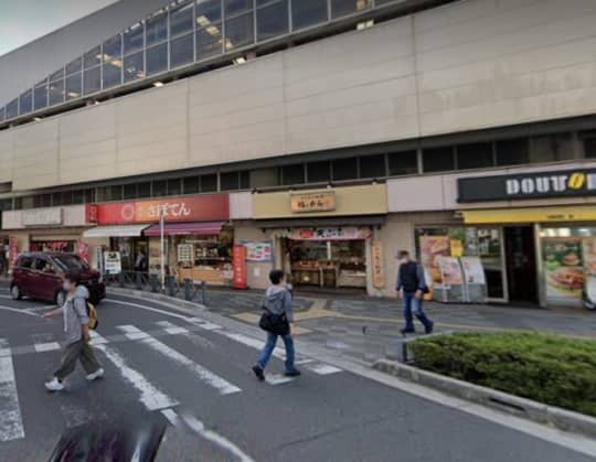 越谷駅東口を出たら、「ドトールコーヒー」や「吉野家」が並ぶ通りを直進する。