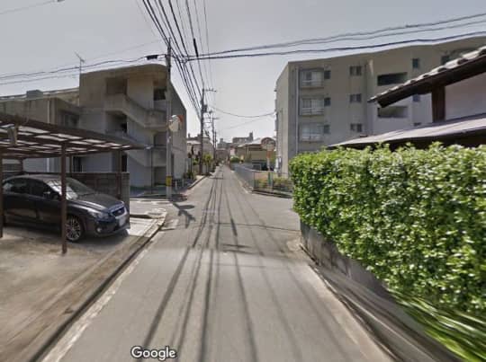 駐車場の先、最初の四つ角を右へ。