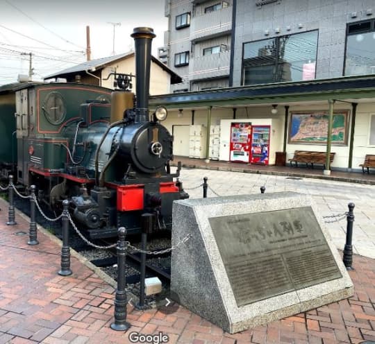 伊予鉄道城南線の「道後温泉駅」を降りたら目印は玩具みたいな「坊ちゃん列車」。