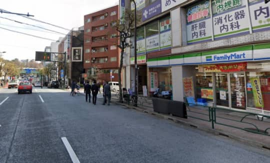ファミリーマート目黒駅東店の奥の角を曲がると、お店があるよ!