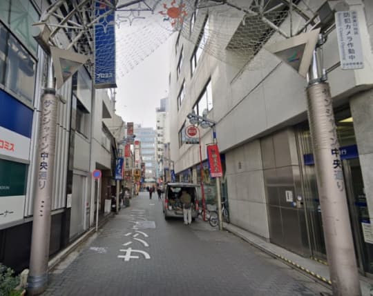 アーケードを抜けて、東京スター銀行とネットカフェの間の道を真っ直ぐ進みます。