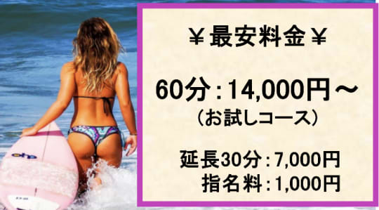 料金 | 70分15,000円〜 | 60分13,000円〜 | 60分14,000円〜 | 70分12,000円〜 |