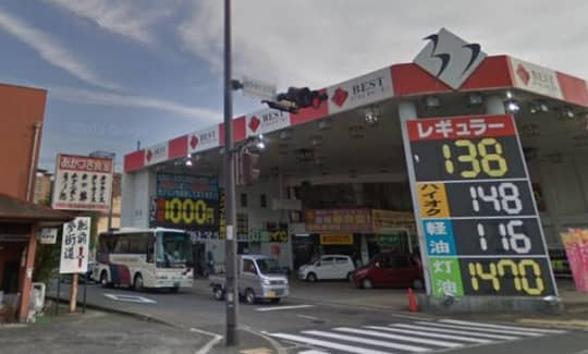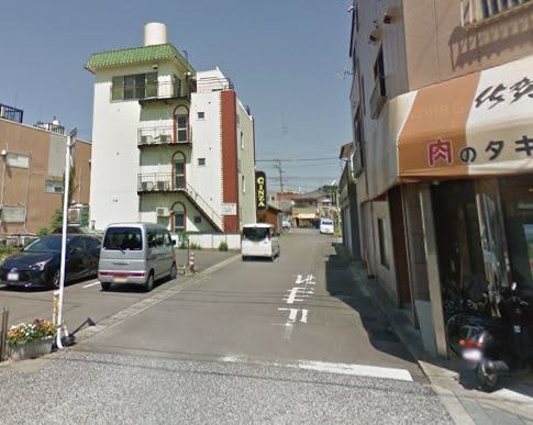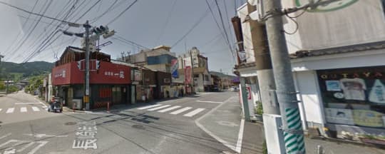 公園の看板を背に、交差点を渡りガソリンスタンドと食堂の間の細道に入ってください。