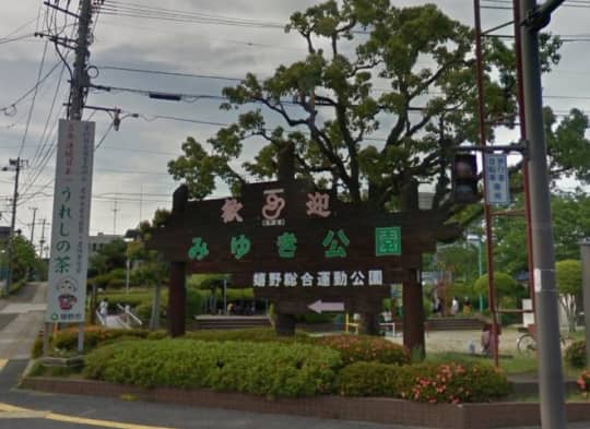 バス『公会堂前』の乗り場でおり、公園の看板が見えます。