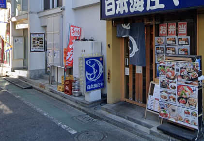 路地に入ると、右手に「日本海庄や」っていう飲食店、左手に「静岡銀行」がある。