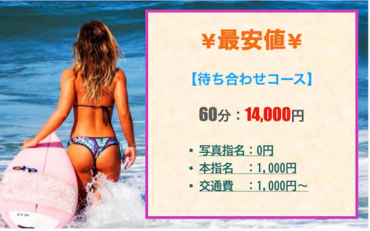 大宮人妻花壇の最安値料金は、「待ち合わせコース」で60分14,000円だ。