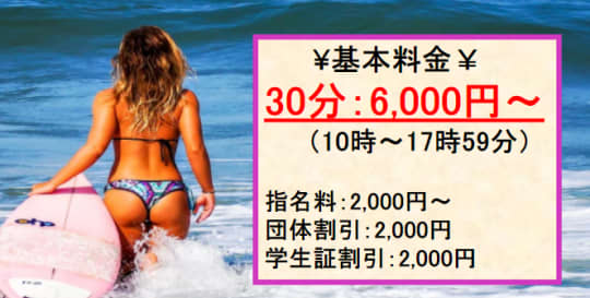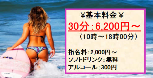 料金 | 30分6,500円~ | 30分6,200円~ | 30分6,000円~ | |
