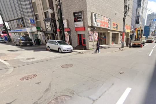 右手に「札幌観光会館ビル」と書いてある青い看板が見えてくるので、その建物の1Fがクレイジーホースだよ。